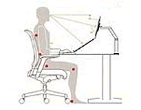 Réglez la hauteur pour avoir les pieds bien ancrés dans le sol, les genoux à 45° Réglez le dossier pour être soutenu-e dans votre position de travail la plus fréquente. Transformez votre fauteuil en chaise en ôtant les accoudoirs si vous devez vous approcher de votre table et clavier. Pensez à vous lever, à faire quelques pas et étirements régulièrement. |